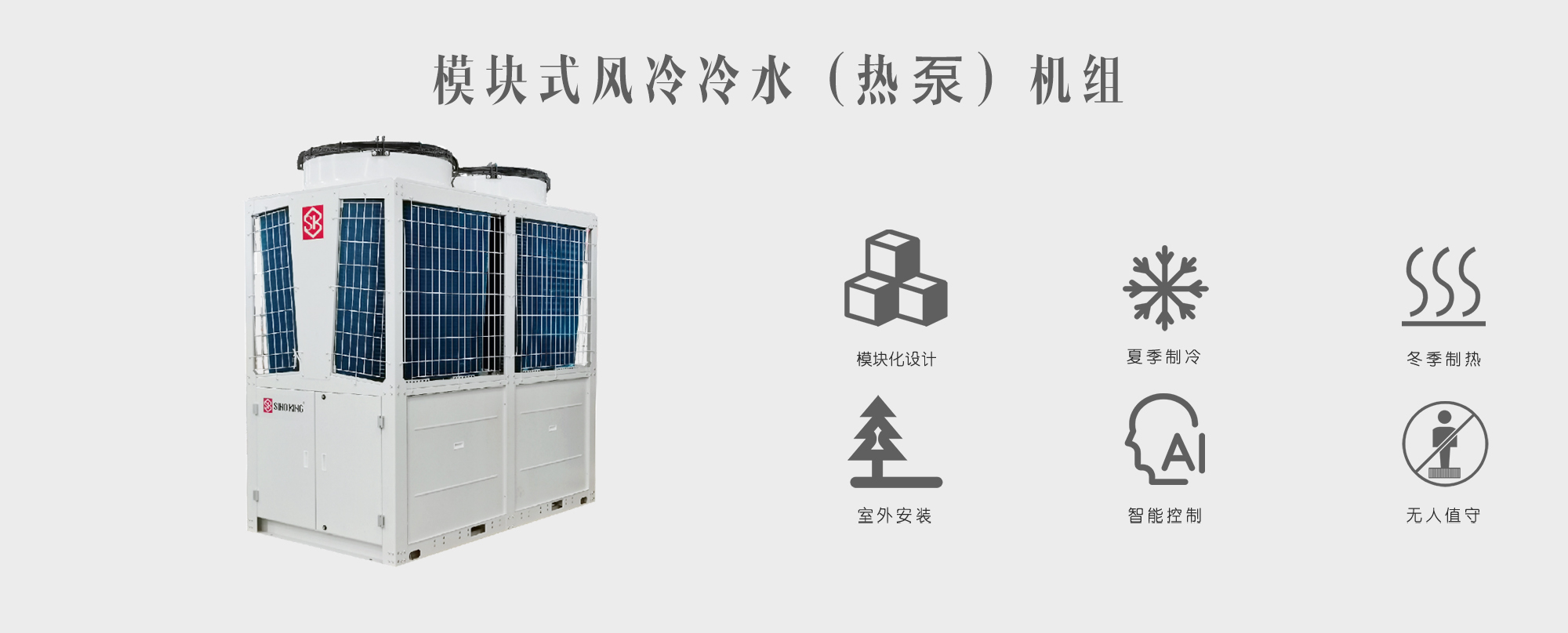 Pig farm environmental control is to provide comfortable temperature and ventilation based on the growth needs of pigs. SINO KING recommends using highly stable, technologically mature, and cost-effective modular air-cooled chiller (heat pump) units to meet the requirements of pig house air conditioning systems, so as to achieve cooling in summer and heating in winter. Additionally, considering China's vast geographical span and the temperature differences between the north and south in winter, SINO KING recommends three types of air conditioning units for heating, suitable for minimum ambient temperatures of -15°C, -25°C, and -30°C, respectively. In summer, modular air-cooled chiller (heat pump) units and fan coil cooling units are used for cooling, while in winter, modular air-cooled chiller (heat pump) units and floor heating are used for heating, to better achieve uniform pig house temperature distribution, intelligent temperature control, unattended operation, and remote monitoring.